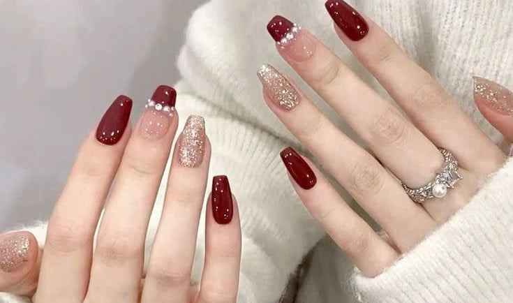 Màu trầm như xanh navy, đỏ rượu, hoặc nâu socola mang đến vẻ đẹp sang trọng và ấm áp, đặc biệt phù hợp với không khí cuối năm. Kết hợp thêm một lớp sơn nhung sẽ khiến bộ móng của bạn nổi bật và đầy cuốn hút.